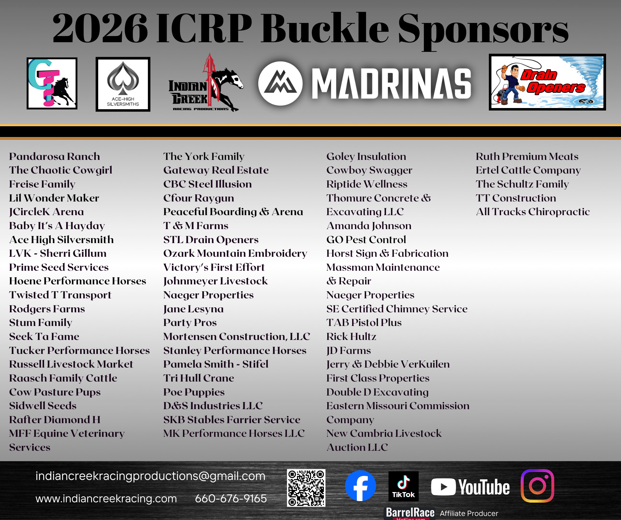 2026 Platinum Sponsors 2026 Gold Sponsors 2026 Silver Sponsors 2025 Bronze Sponsors 2026 Buckle Sponsors