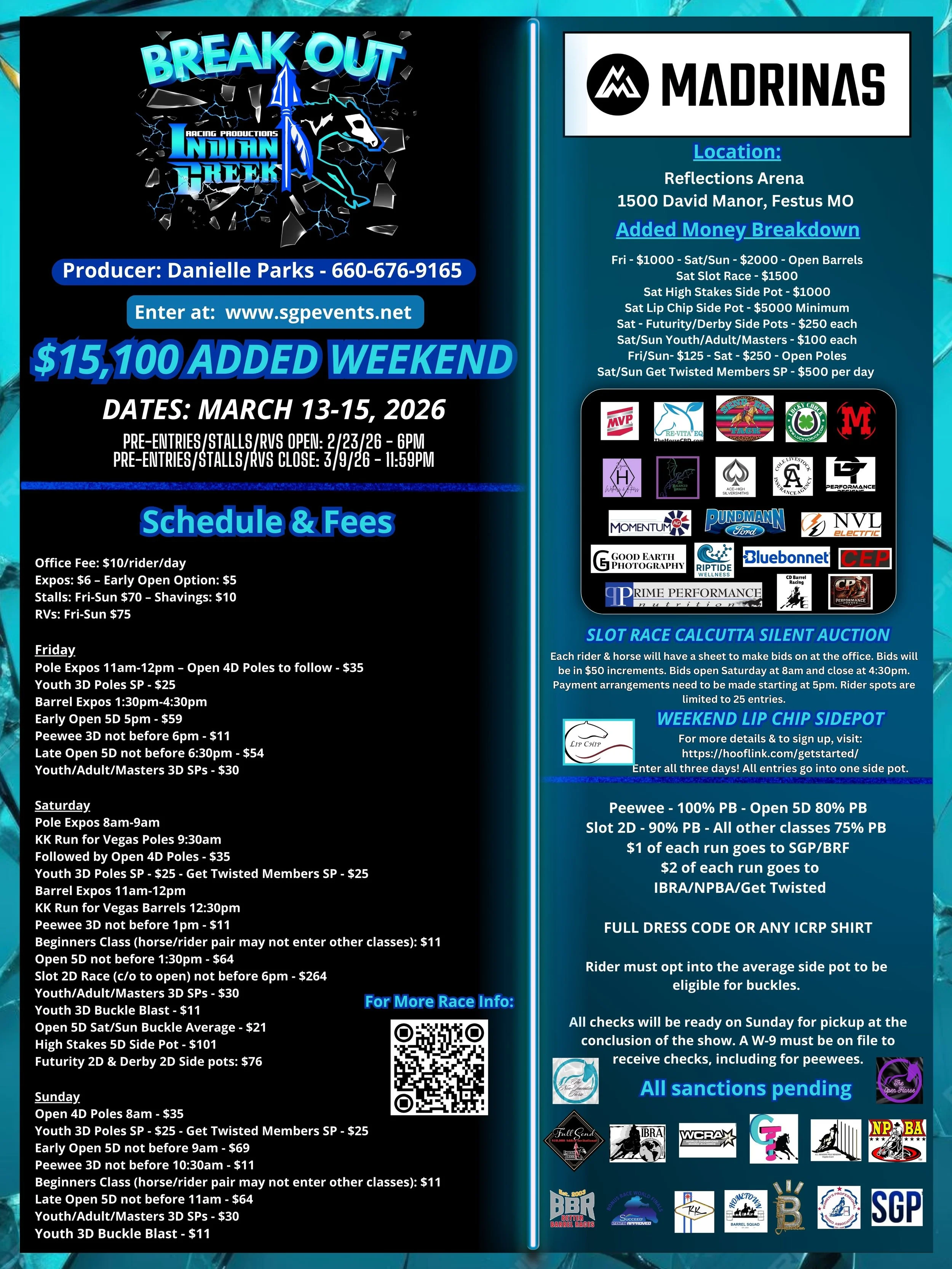 Poles run on Saturday, March 14th (not before 9:30am) & Barrels will run on Saturday, March 14th (not before 12:30pm).