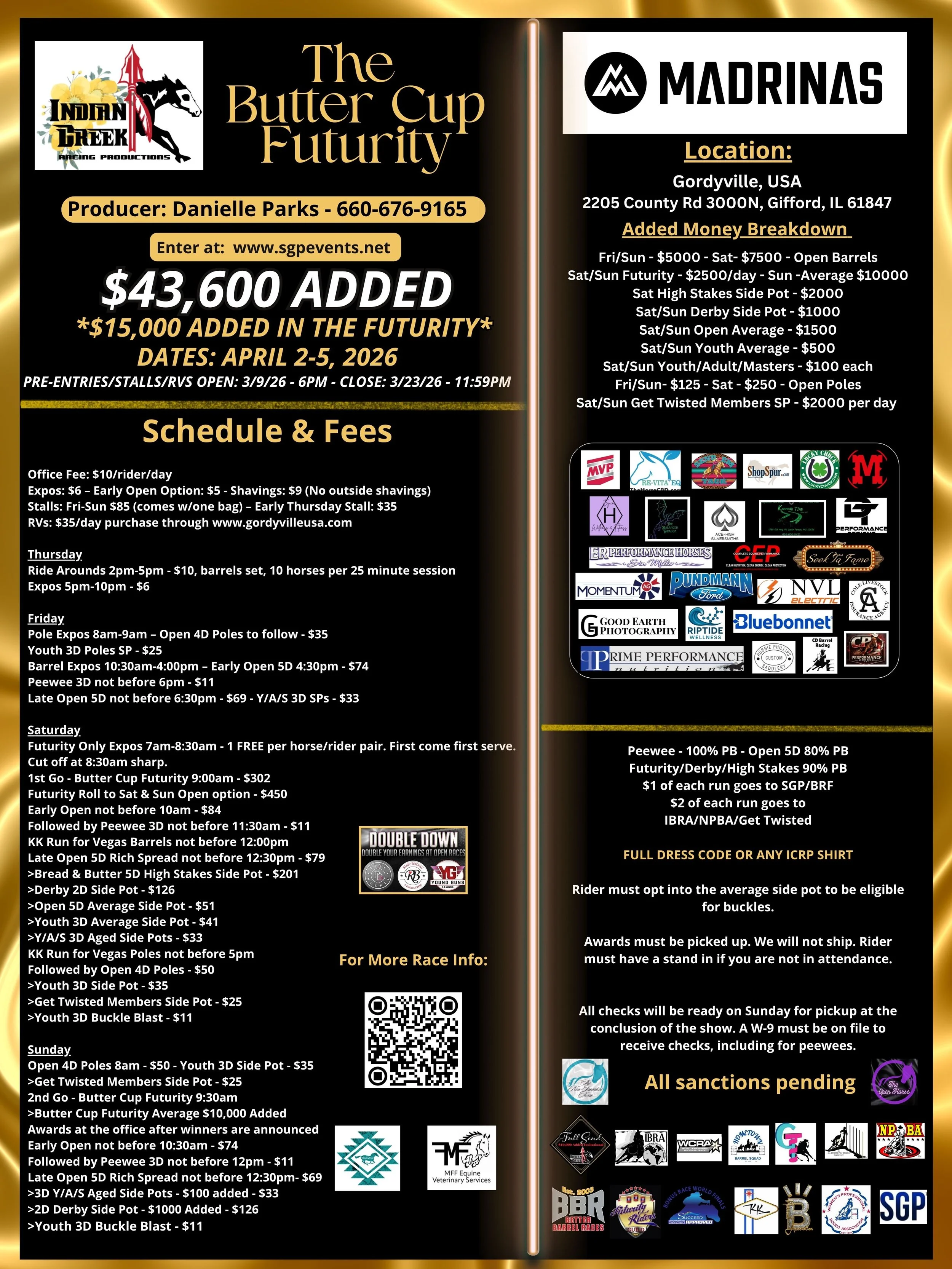 ➡️ Your horse must have its number on its saddle pad with their pre-draw number in a random draw for both rounds. Pre-draw will be posted no later than 3/30/2026. Late entries for the futurity will be drawn immediately at the end of the show Friday. Futurity riders will run in reverse order for round #2.