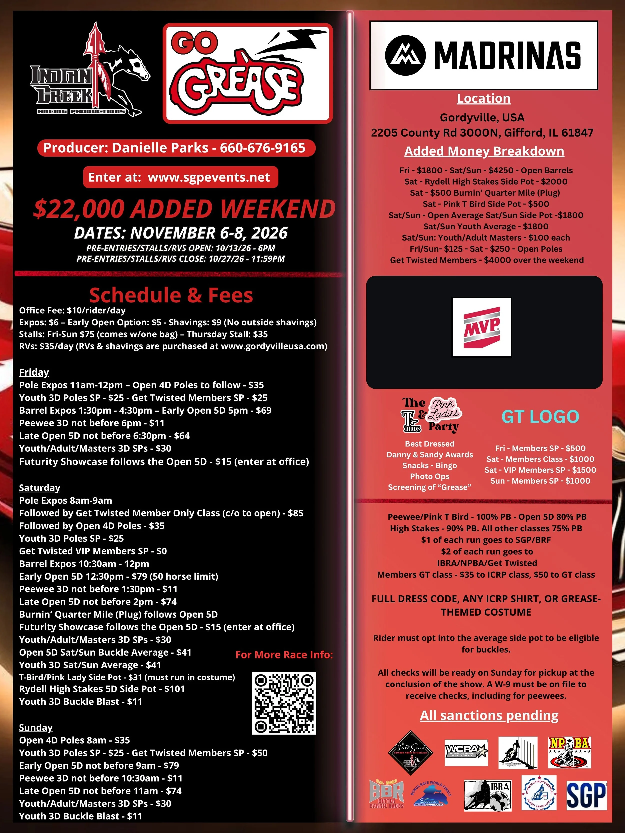 ALL REQUESTS - RV/Stall/Entries - MUST be emailed to indiancreekracingproductions@gmail.com. Text/comments/PMs etc. will not be honored.