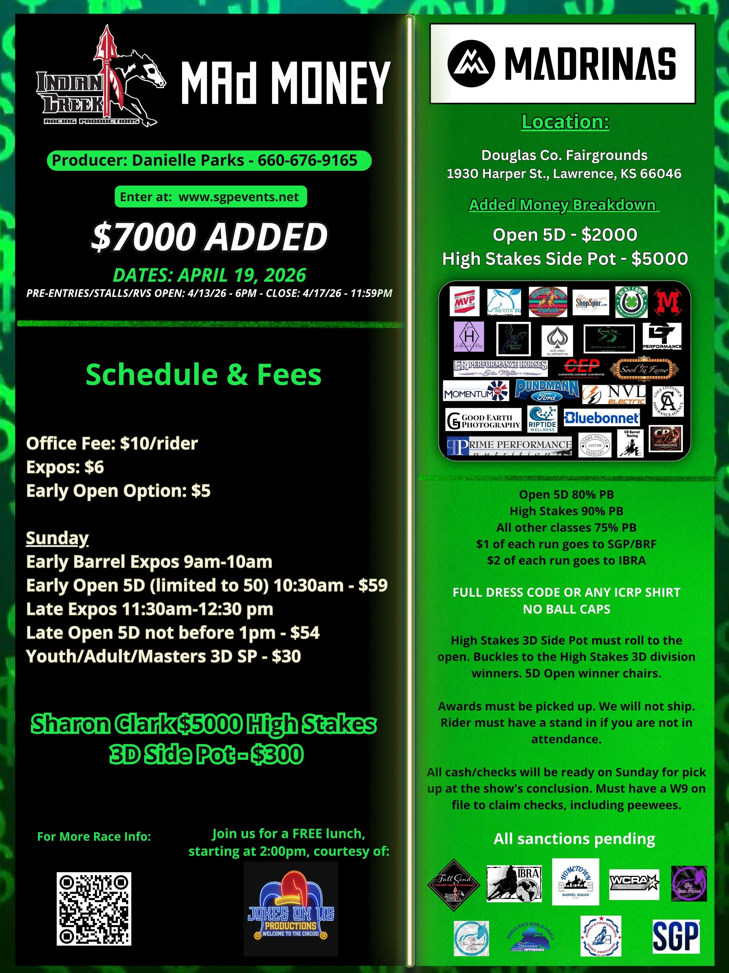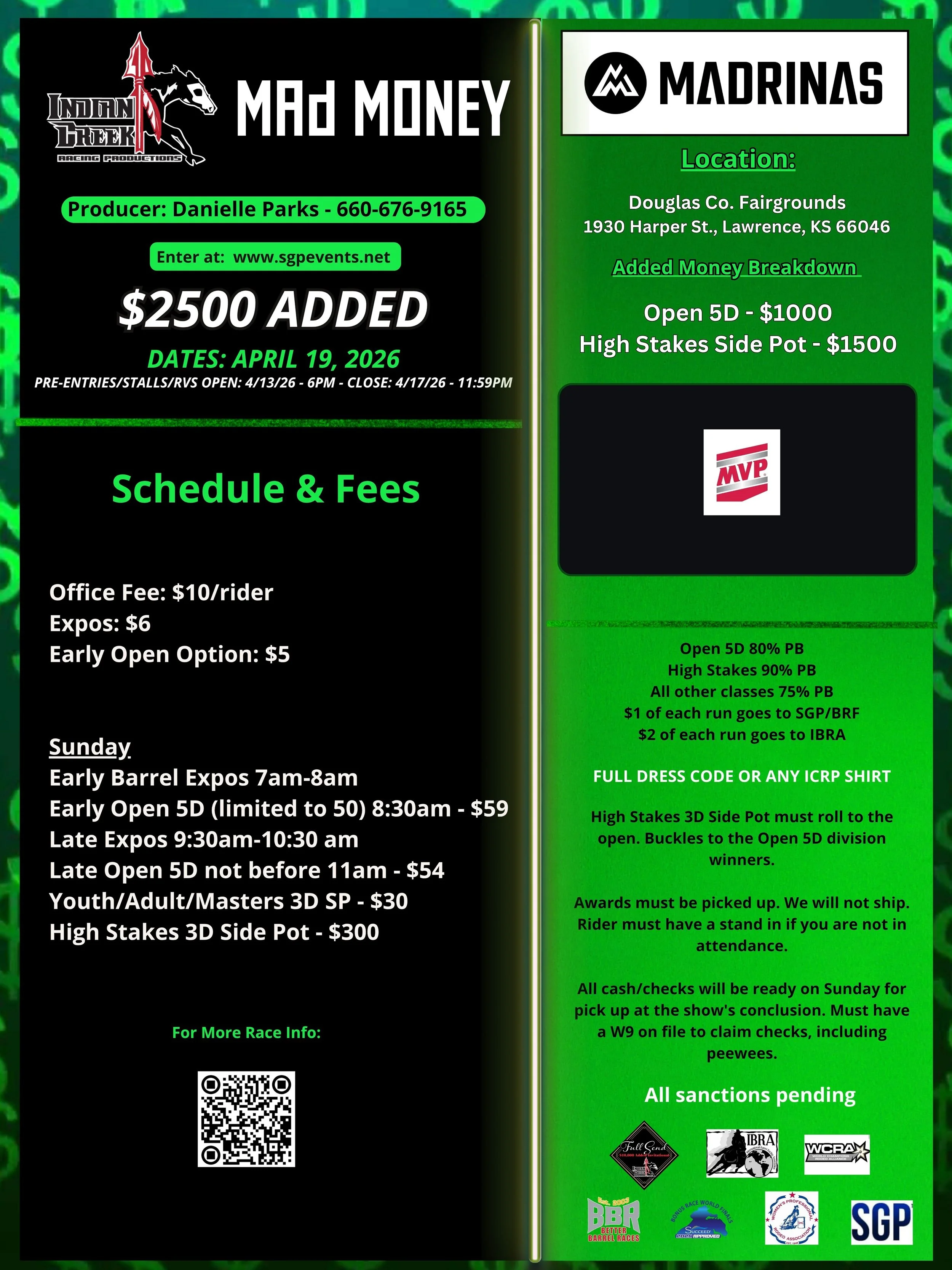 Entries will close when the first horse runs in each class. You MUST be paid before you run. Cash or card for late entries if entering on site.